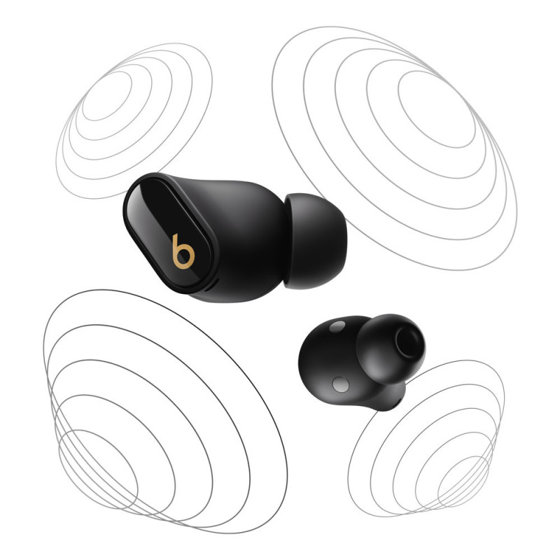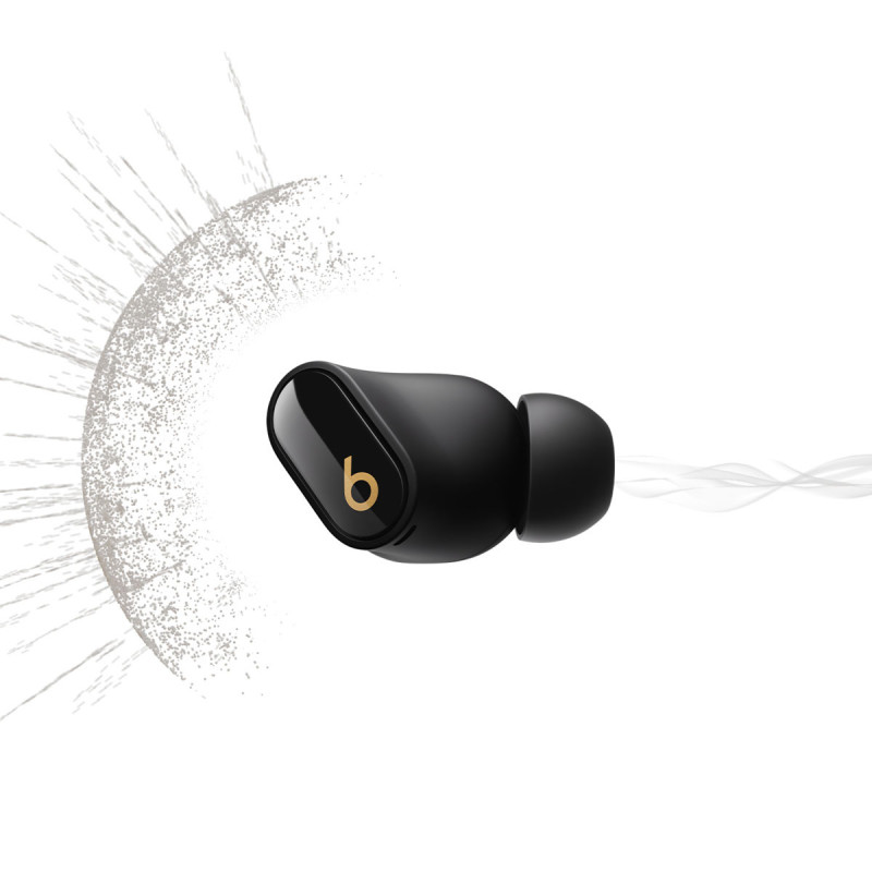 footnote10Testing conducted by Apple in March 2023 using preproduction Beats Studio Buds + and Charging Case units and software paired with iPhone 13 Pro units and pre-release software. The playlist consisted of 358 unique audio tracks purchased from the iTunes Store (256-Kbps AAC encoding). Volume was set to 50% and Active Noise Cancellation was turned on. Testing consisted of full Beats Studio Buds + battery discharge while playing audio until the first Beats Studio Buds + stopped playback. Battery life depends on device settings, environment, usage, and many other factors.