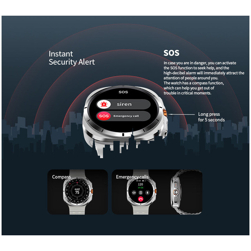 Bluetooth Calling, Heart Rate Monitor, Blood Oxygen monitoring, Voice Assistant,Pedometer,Sport modes,Play music,Calories,Distance,Blood pressure,Sleep monitoring,Message notification,Calculator,Sedentary reminde,Alarm reminder,Weather,Split Screen ,Passcode Lock, Custom watch face,Map Navigation, Short Video Control,SOS,Compass