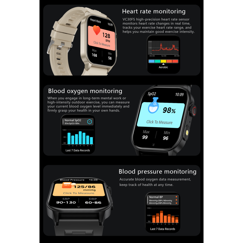 Health Monitoring | HR, BP, SpO₂, Sleep, Steps, Calories, Sedentary |