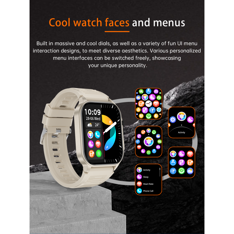 The 2.01-inch Bluetooth Smartwatch combines sleek design with powerful performance for all-day convenience. Powered by the JL7012E chipset and Bluetooth 5.2, it supports Bluetooth calling, real SpO₂ tracking, and multi-sport monitoring. With a 370mAh cobalt battery, IP68 waterproof rating, and Da Fit app integration, it delivers seamless connectivity, advanced health insights, and smart tools like find phone, shake-to-photo, and social notifications — making it the perfect blend of style, intelligence, and performance.