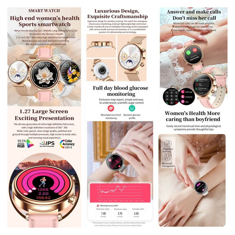 Bluetooth call, female physiological cycle, non-invasive blood glucose measurement, uric acid measurement, blood lipid monitor
