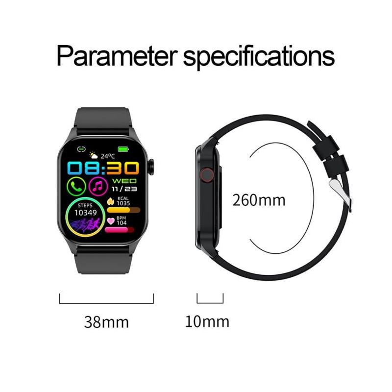 Bluetooth call, non-invasive blood glucose measurement, blood composition measurement (uric acid lipid function), Meto function, SOS emergency call function, blood oxygen monitoring, breathing training, women's health (menstrual tracking), heart rate monitoring, blood pressure monitoring, sleep monitoring, sedentary reminder and other health functions. Step Count/Calories/Distance, Multi-motion mode, alarm clock, screen display, weather forecast, smart voice assistant, games,flashlight, music playback and control.