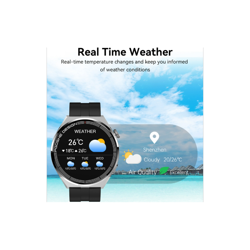 Bluetooth Calling, Heart Rate Monitor, Blood Oxygen monitoring,,NFC, Voice Assistant,Pedometer,Sport modes,Play music,Calories,Breath training, Distance,Raise your hand to brighten the screen,Blood pressure,Sleep monitoring,Message notification,Calculator,Sedentary reminde,Alarm reminder,Weather,Custom watch face.