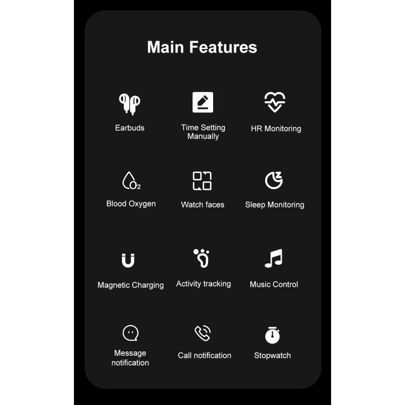 ECG,Meteorological data (pressure/UV/humidity/wind) ,GPS connectivity , bluetooth call,physiological cycles, the countdown, card management, sedentary remind, meter, distance, calories, heart rate/blood pressure/oxygen/pressure/ecg monitoring, bluetooth music control, sleep monitoring, phone calls reminding, SMS alerts, social APP message to remind, the alarm clock to remind, multi-movement, Turn the wrist and shine the screen,Looking for Phones, stopwatch, refuse to answer phone, multi-dial switch, custom dial,game.