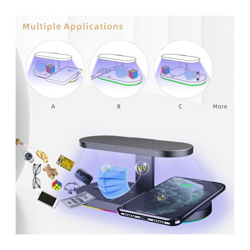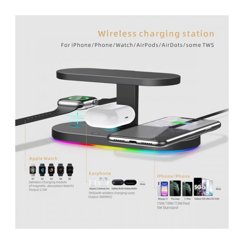 Multi Light 3 in 1 Wireless Charger for All Brands Phone.