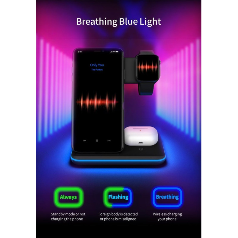 Multi Light WC16 is a 3 in 1 Wireless Charger which can be used for All Brands Phone.