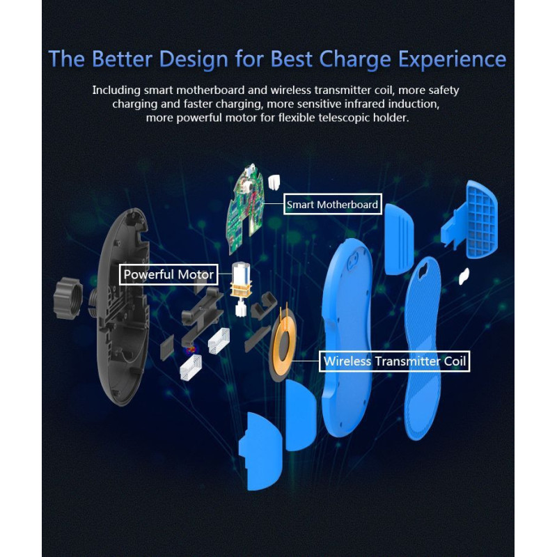 Automatic Wireless Car Charger with Coil Sensor and Bionic Wing Design. Easy to Use.