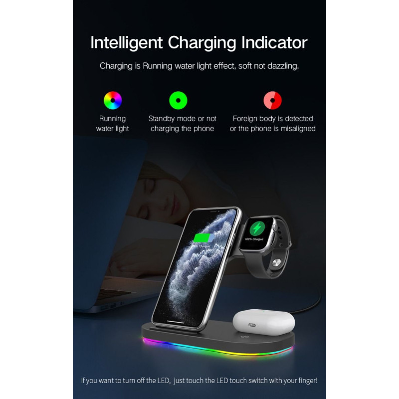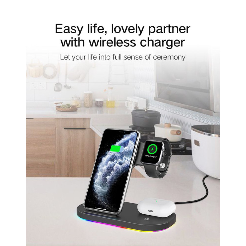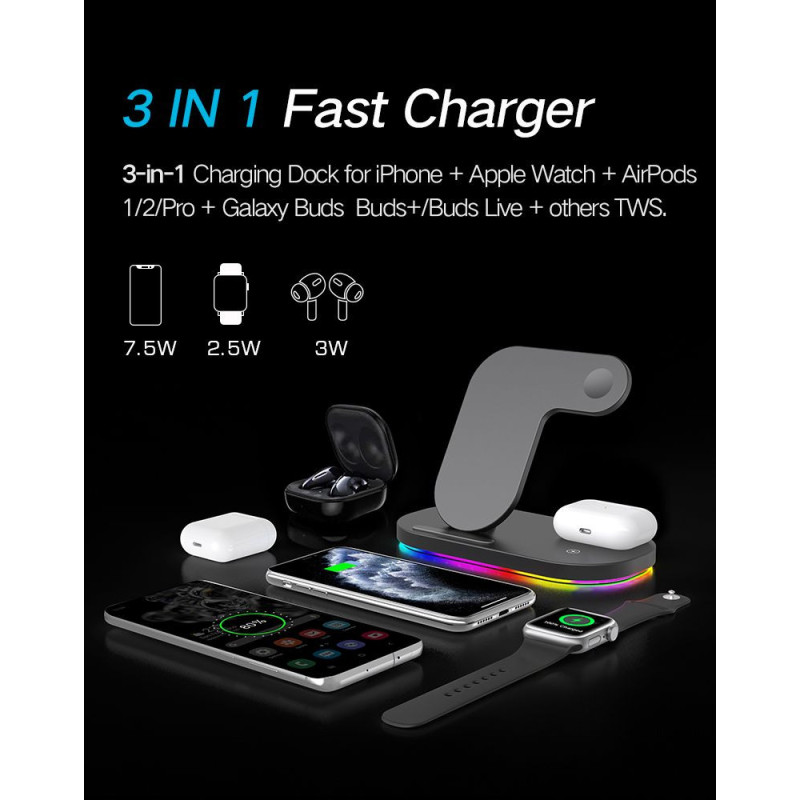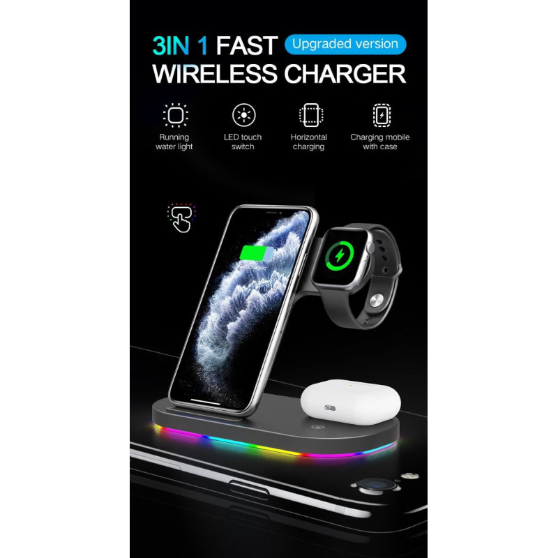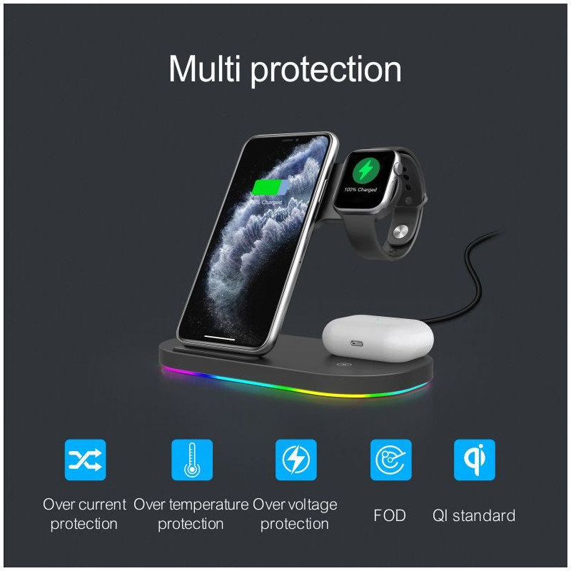 Multi Light WC16 is a 3 in 1 Wireless Charger which can be used for All Brands Phone.