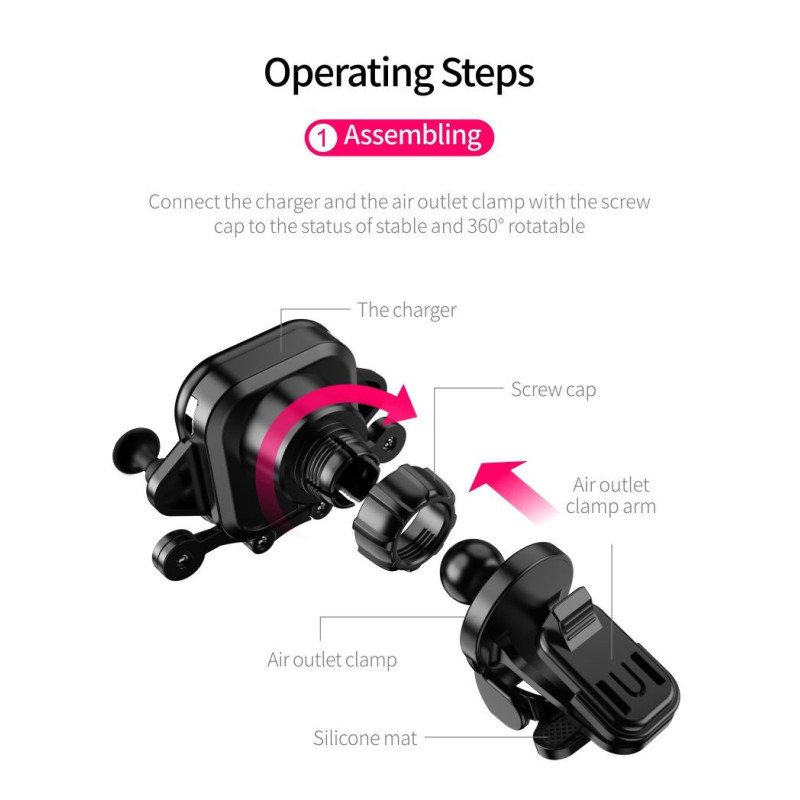 Automatic Wireless Car Charger with Coil Sensor and Bionic Wing Design. Easy to Use.