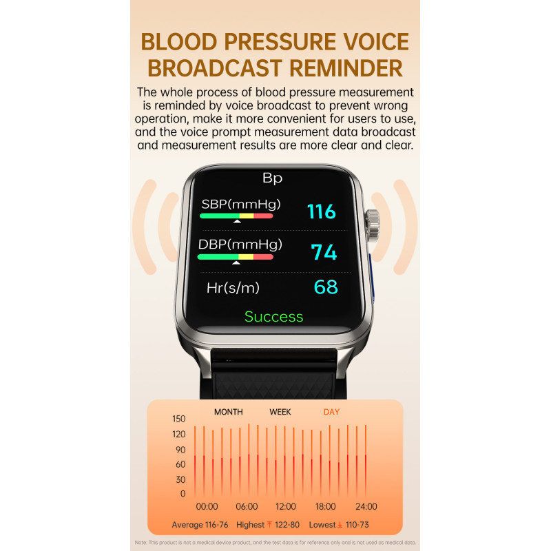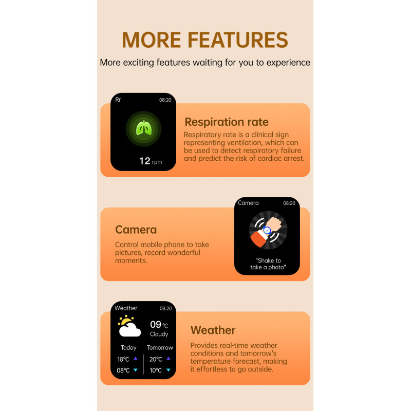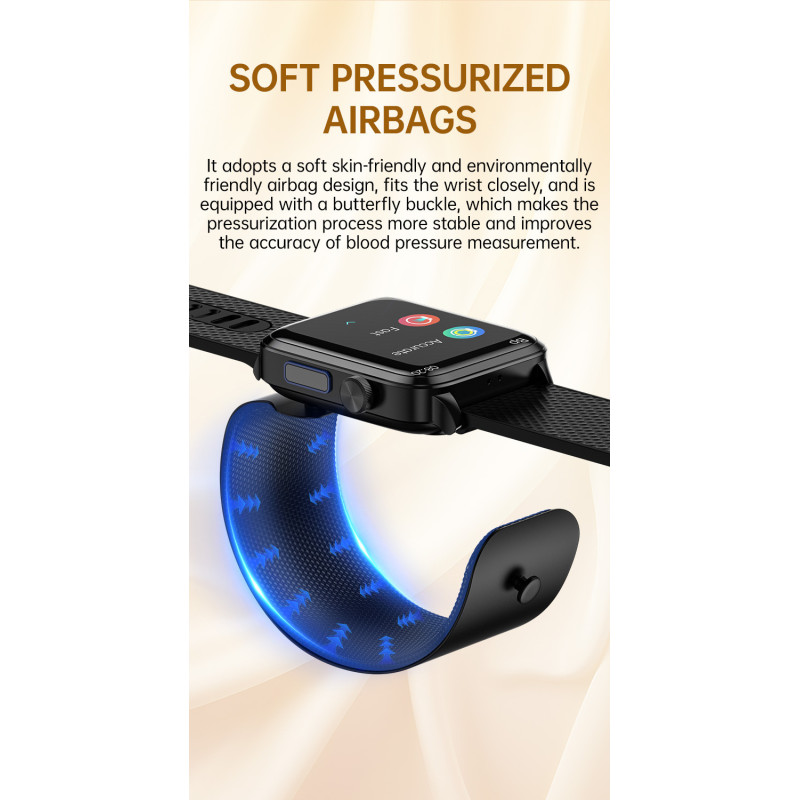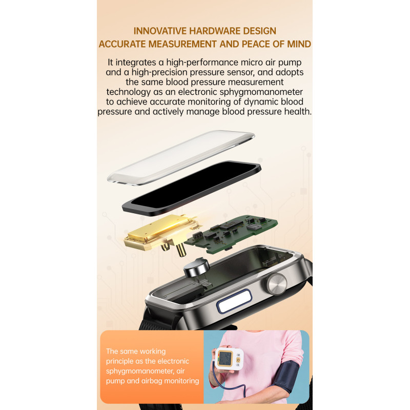 The 1.65-inch Smart Health Watch redefines wearable health tracking with its detachable inflatable airbag for accurate blood pressure monitoring. Powered by the RTL8762DW chipset, it also measures heart rate, SpO₂, temperature, and respiratory rate with precision. With Bluetooth 5.1 connectivity, IP68 waterproof rating, and the Mecare app, it’s a complete solution for health, fitness, and smart living. The watch also includes SOS alerts, sleep tracking, and social sharing, making it a perfect blend of medical-grade functionality and everyday convenience.